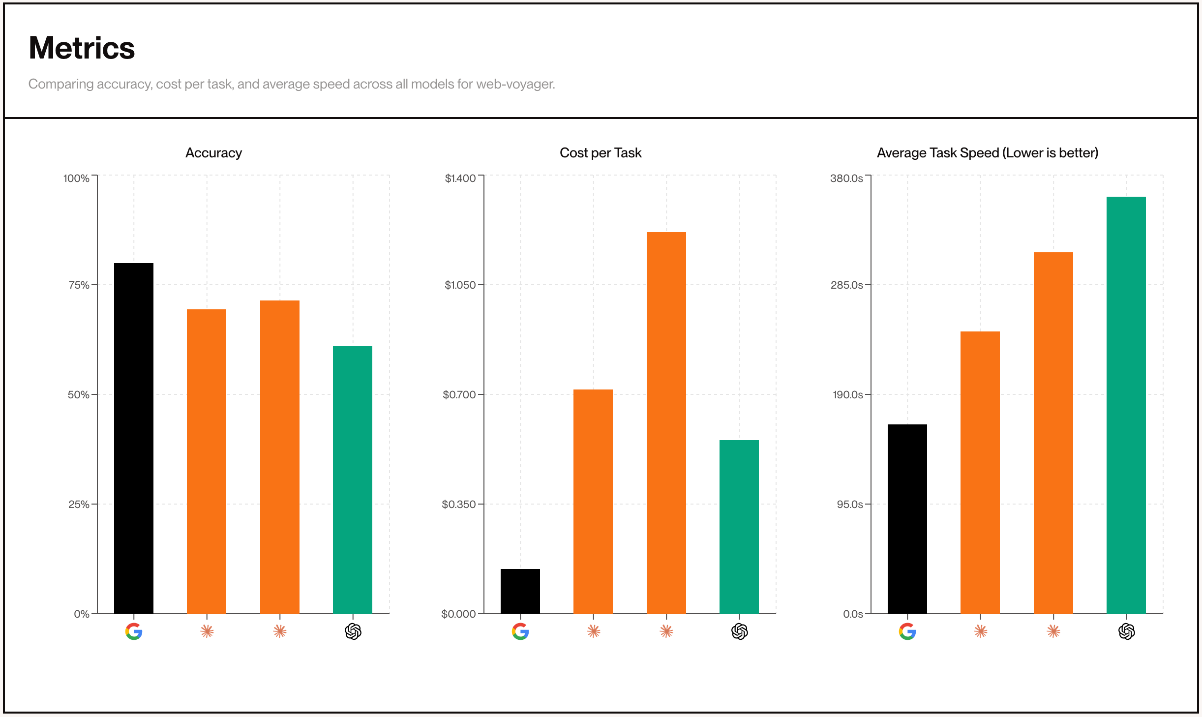 We're not there yet; the web is still a wild frontier for AI. Teaching models to reason, explore, and act within it is no small feat. That’s why we partnered with Google DeepMind, leveraging the Browserbase infrastructure to help train, evaluate, and deploy the newest generation of Gemini models, reaching new state-of-the-art levels in accuracy, speed, and cost.