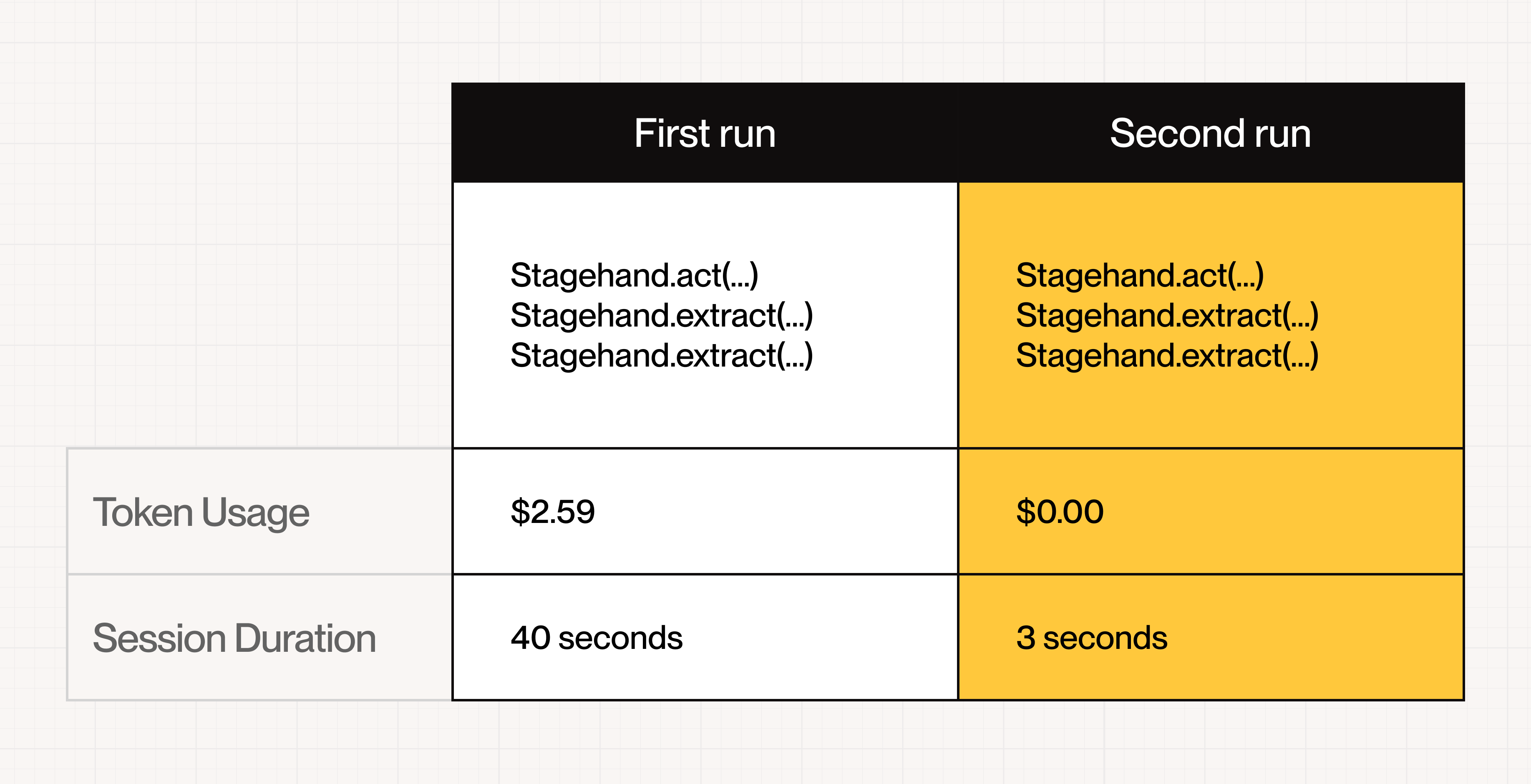 Web automation is repetitive. Most web automation runs the same actions thousands of times, and pays full price every time. We recently shipped caching in Stagehand. Here's how it works under the hood, why we built it, and where it breaks.